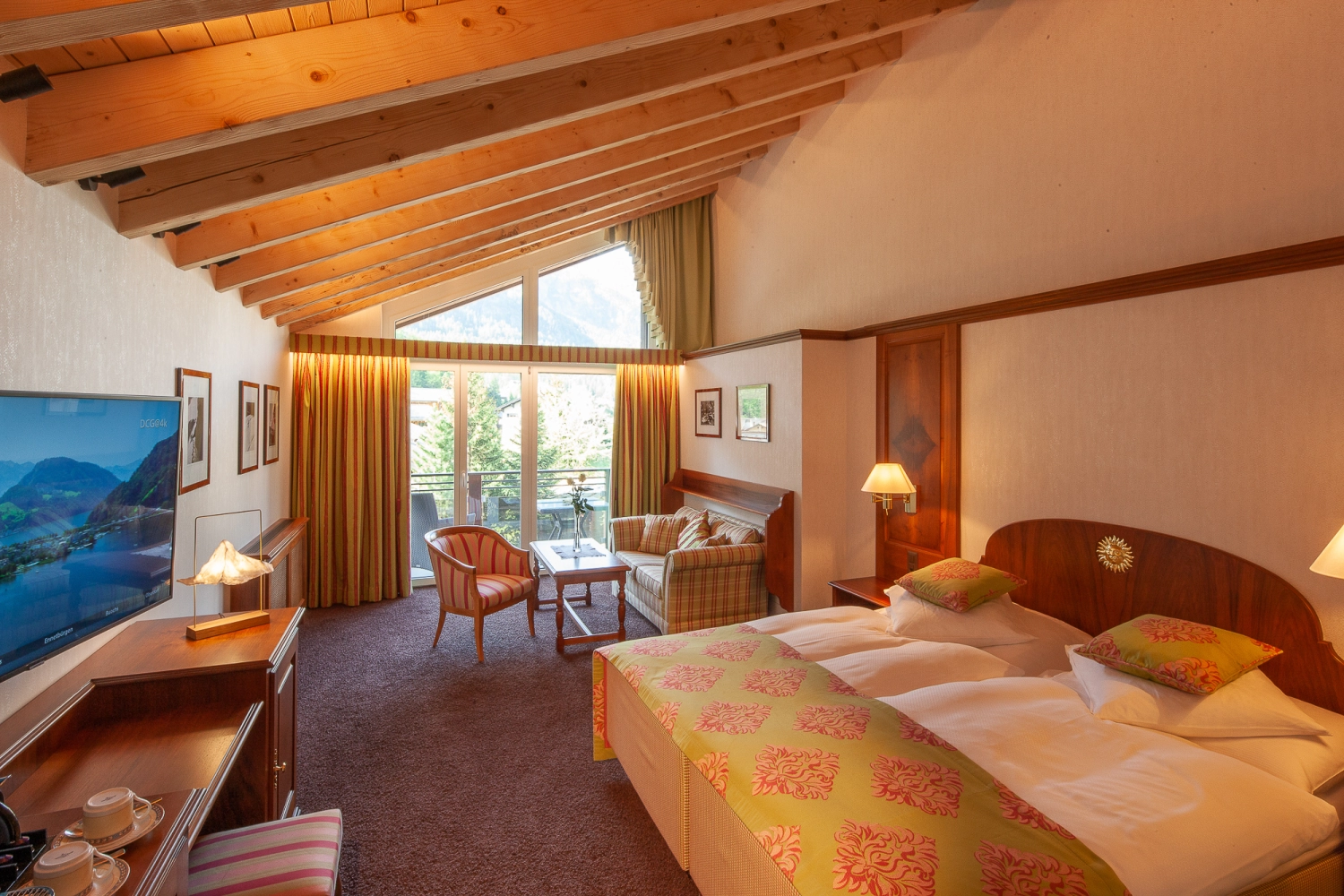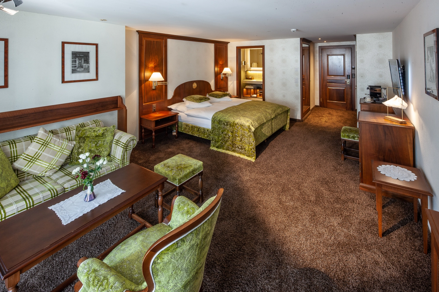 The Junior Suites Deluxe are also suitable as three-bed, one full bed for the third person is integrated in the room. Also suitable for three adults.