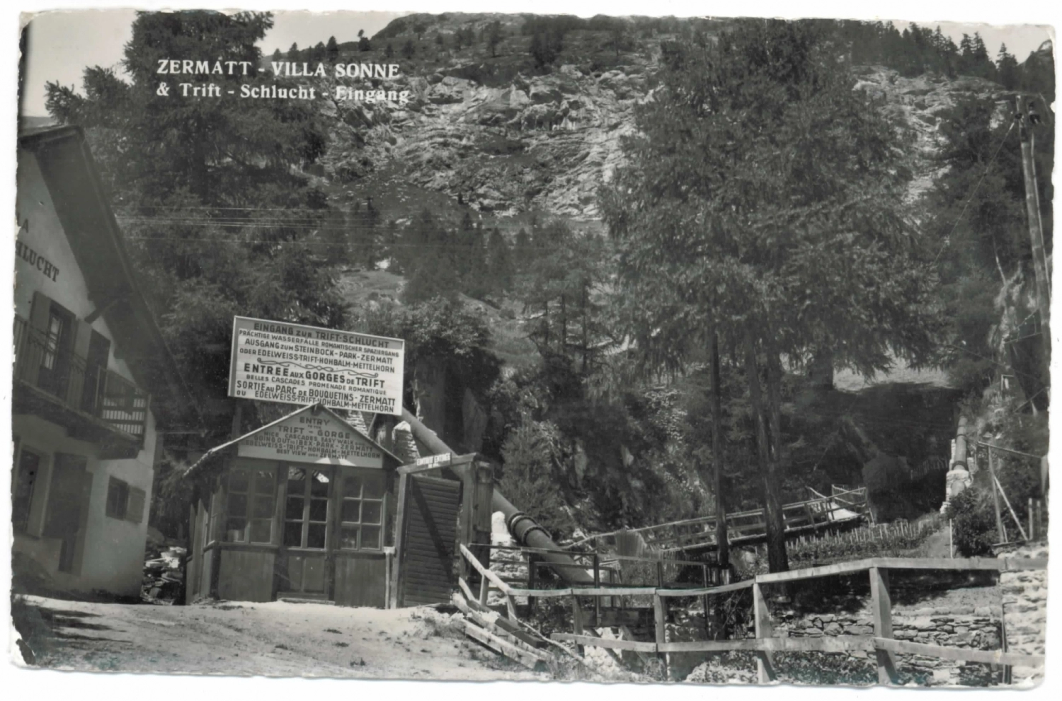 Stanislaus Kronig, Zermattois pure souche et célibataire endurci, croyait dur comme fer que l’argent devait toujours être investi dans l’immobilier. C’est pour cela qu’il a acheté deux ans plus tard (en 1950) à la bourgeoisie de Zermatt la propriété adjacente pour la somme de CHF 1'200.00. Celle-ci incluait également les droits d’utilisations de la gorge du Trift.