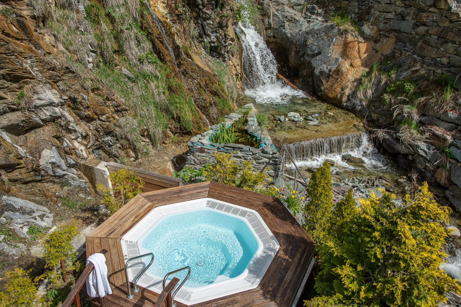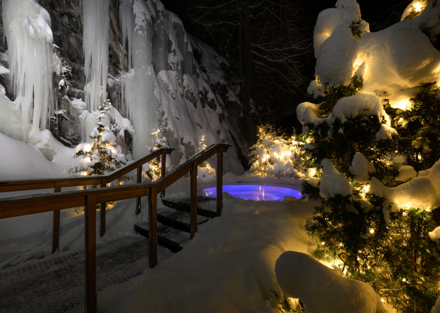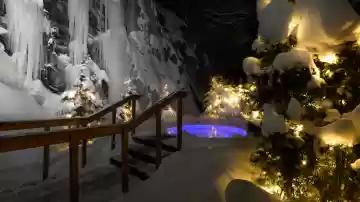 Offrez-vous une coupe de champagne dans notre bain tourbillon extérieur en hiver - entouré de rochers ou de glace et pourtant à des températures d'eau confortablement chaudes....